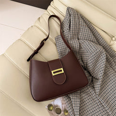 شنطة كتف جلد أنيقة بقفل ذهبي مستطيل